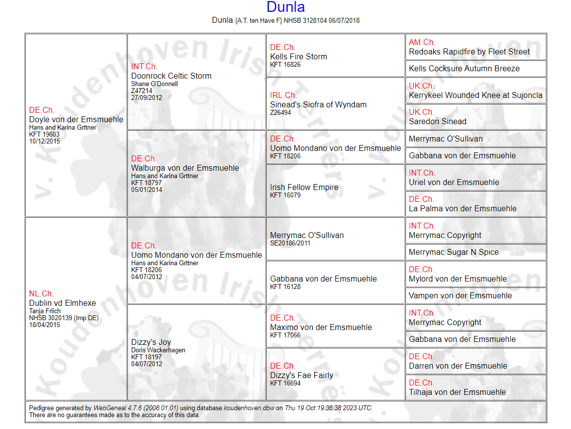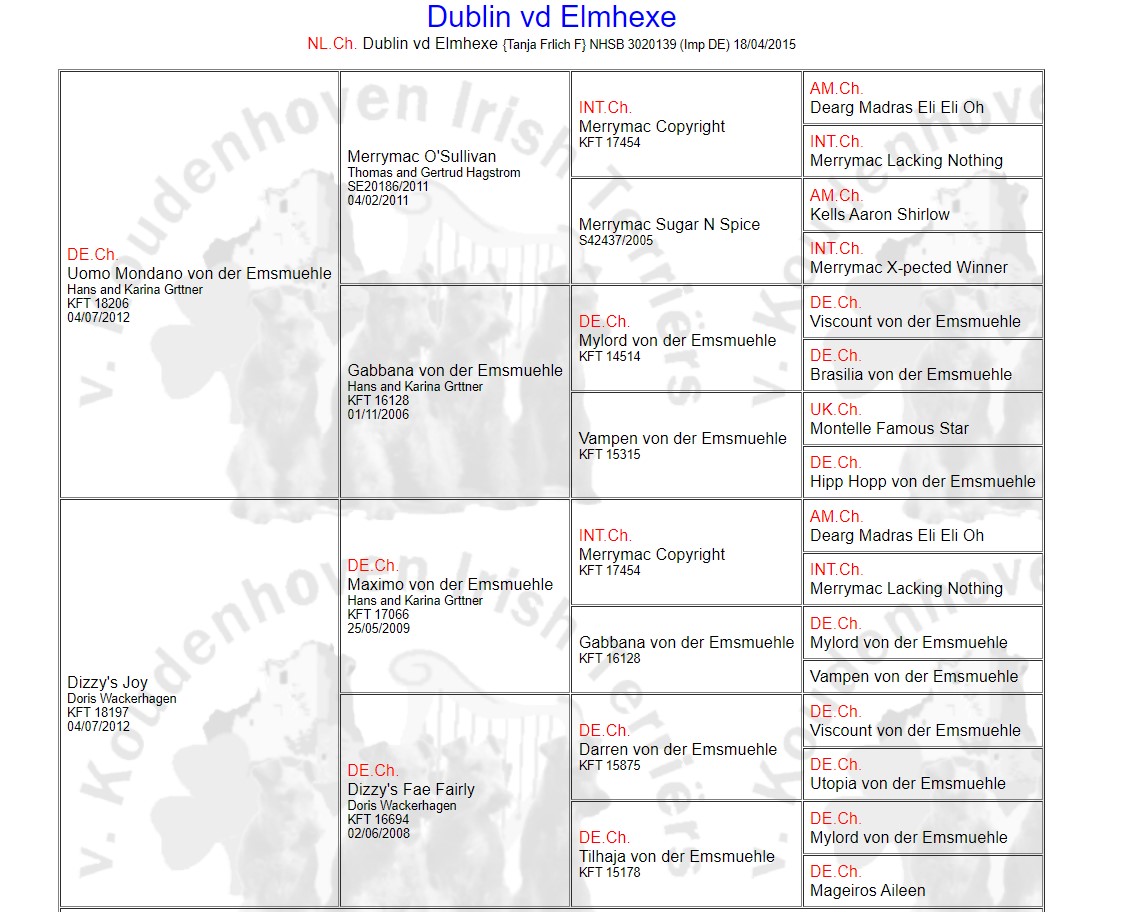 Stamboom Dublin vd Elmhexe (moeder) (download hier)