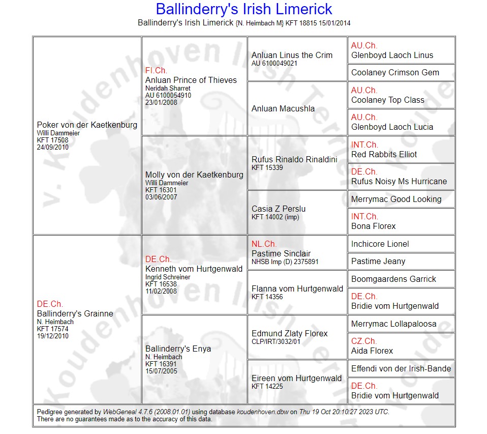 Ballinderry's Irish Limerick X Dunla (download hier) de stamboom van Ballinderry's